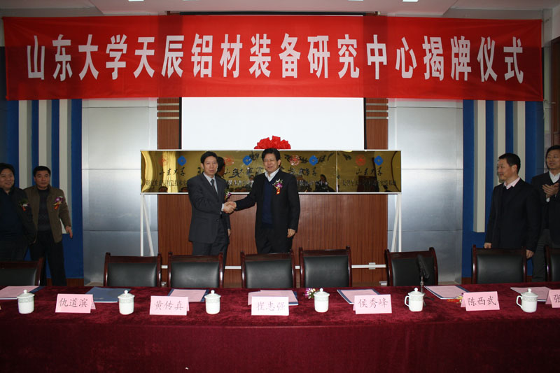 2012年12月26日上午,濟南天辰鋁機制造有限公司與山東大學工程機械學院產(chǎn)學研合作揭牌儀式在濟南天辰電教室隆重舉行。